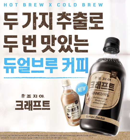 조지아 크래프트는 핫브루와 콜드브루 두 가지 추출방식을 합친 듀얼브루라는 방식으로 만들어진 커피라고 하는데요.