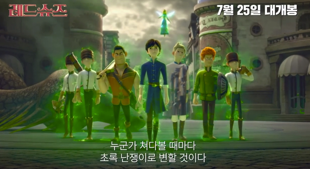 한편 요정공주를 마녀로 착각해 공격을 한 벌로 초록색 난쟁이로 변하는 저주에 걸린 일곱 왕자들은 우연히 레드슈즈와 대면하게 됩니다.