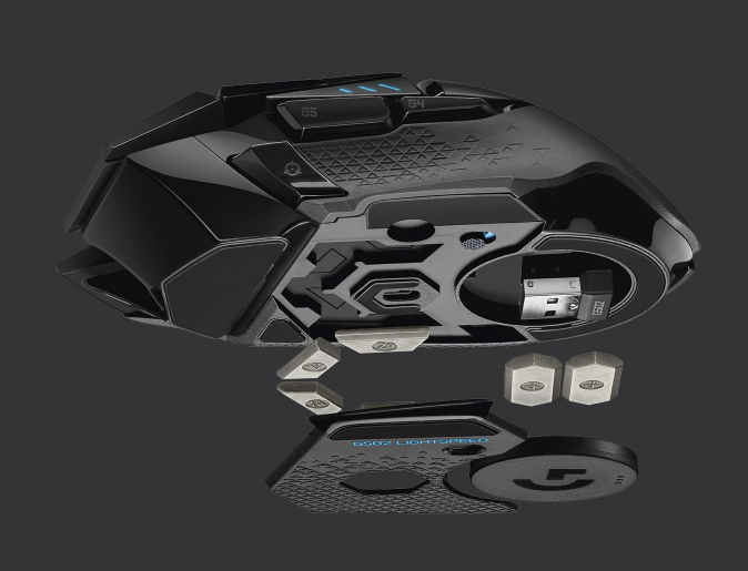 로지텍G502 HERO는 마우스 하단에 부착할 수 있는 3.6g의 무게추를 총 5개 제공하여 마우스의 무게를 유저의 취향에 맞게 변경할 수 있습니다.